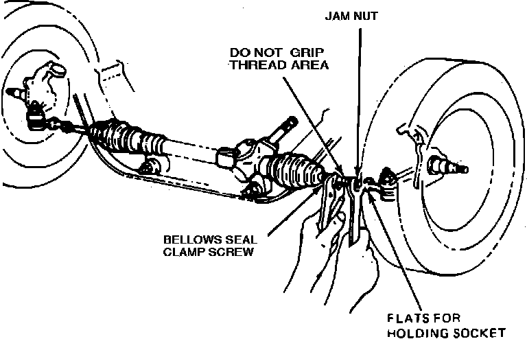 3. Place open end wrench on flats of tie rod socket to prevent socket from turning, then loosen tie rod jam nuts.