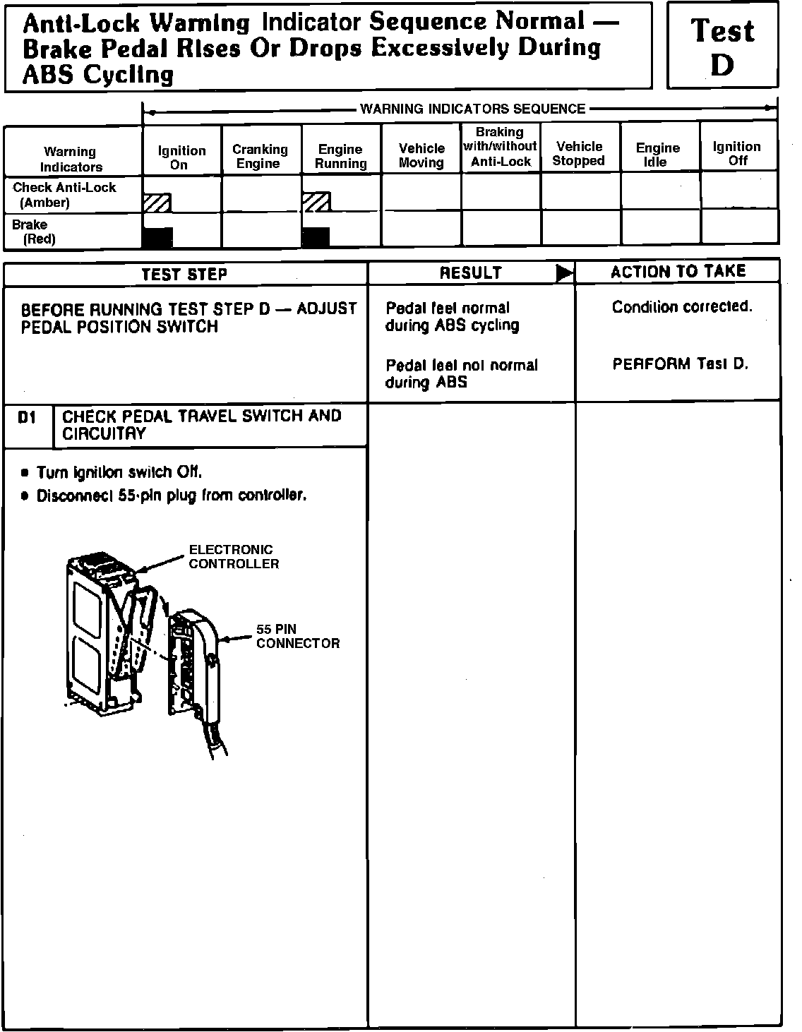Fig. 124 Test D1 (Warning Sequence Normal/brake Pedal Rises Or Drops Excessively During ABS Cycling). 1991 Town Car: