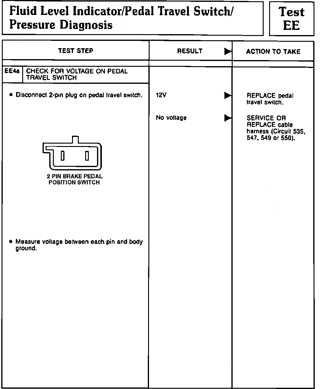 Fig. 63 Test EE4a (Fluid Level Indicator/Pedal Travel Switch/Pump Motor). 1991 Town Car: