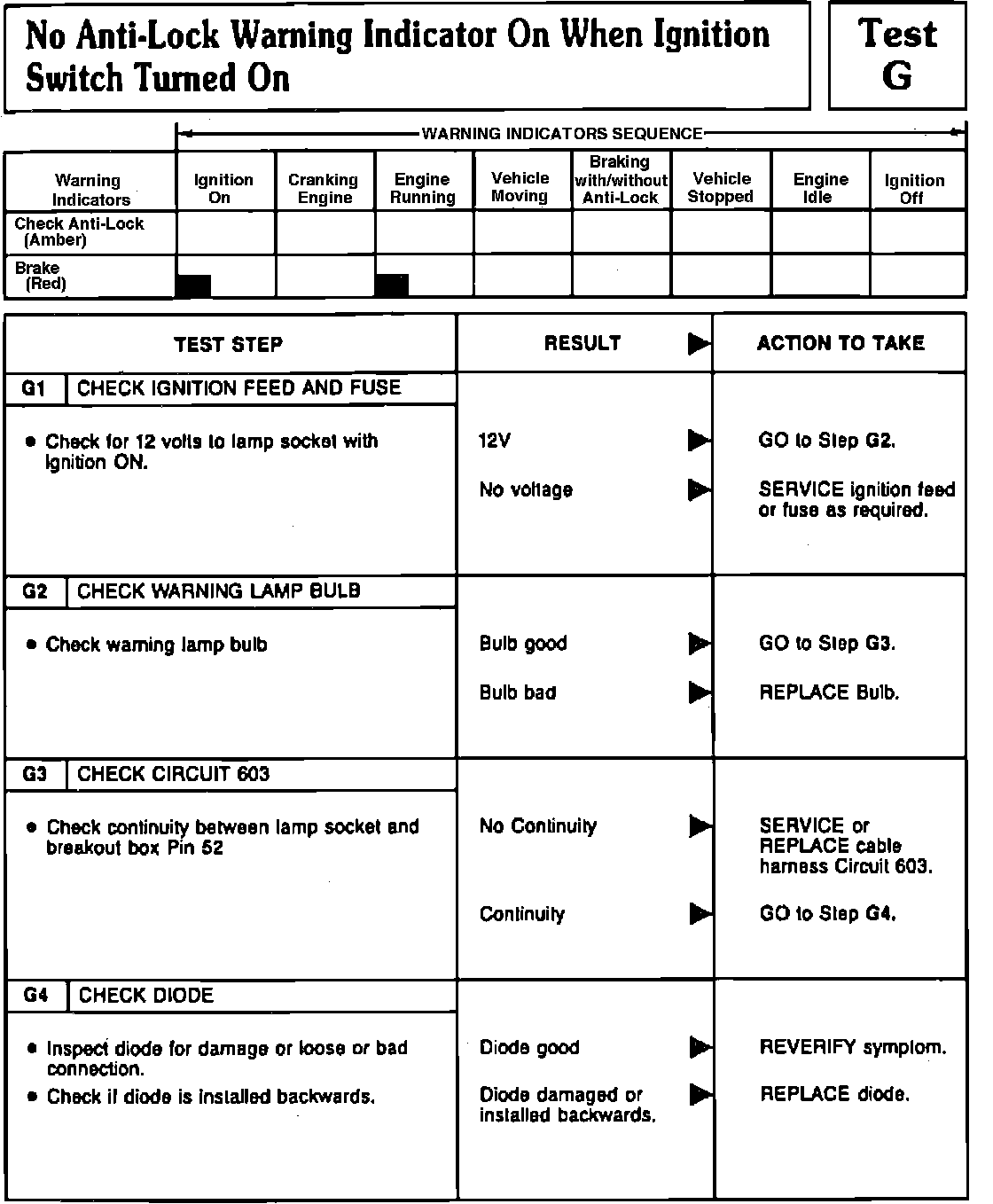 Fig. 134 Tests G1, G2, G3 & G4 (No Warning Lamp ON When Ignition Switch Turned ON). 1991 Town Car: