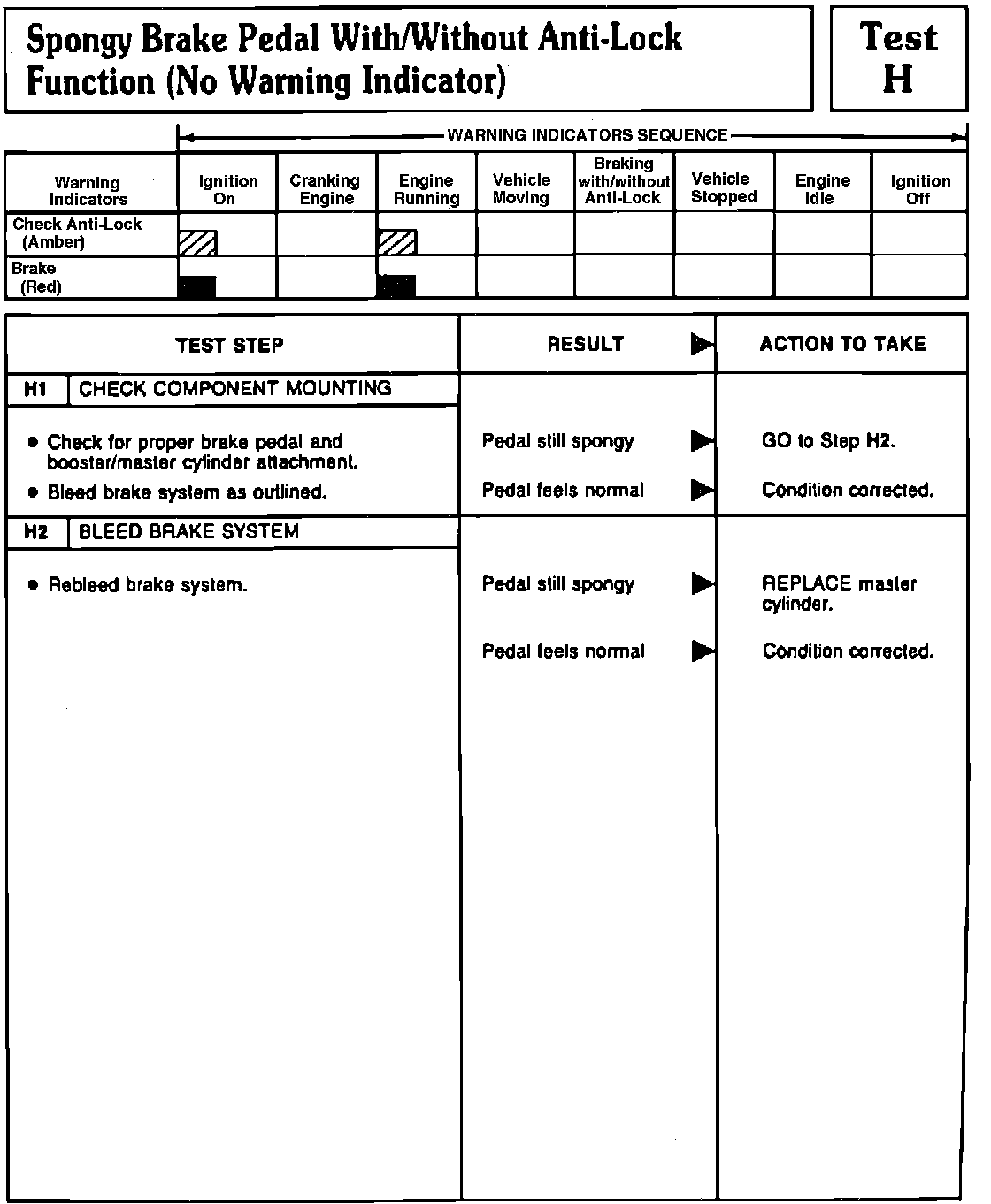 Fig. 137 Tests H1 & H2 (Spongy Pedal With/Without ABS Function, No Warning Lamp). 1991 Town Car: