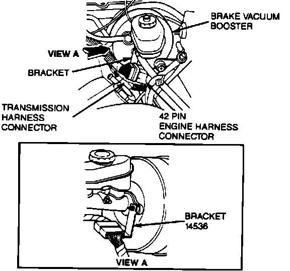 14. Install 42-pin connector on retaining bracket on vacuum brake booster.