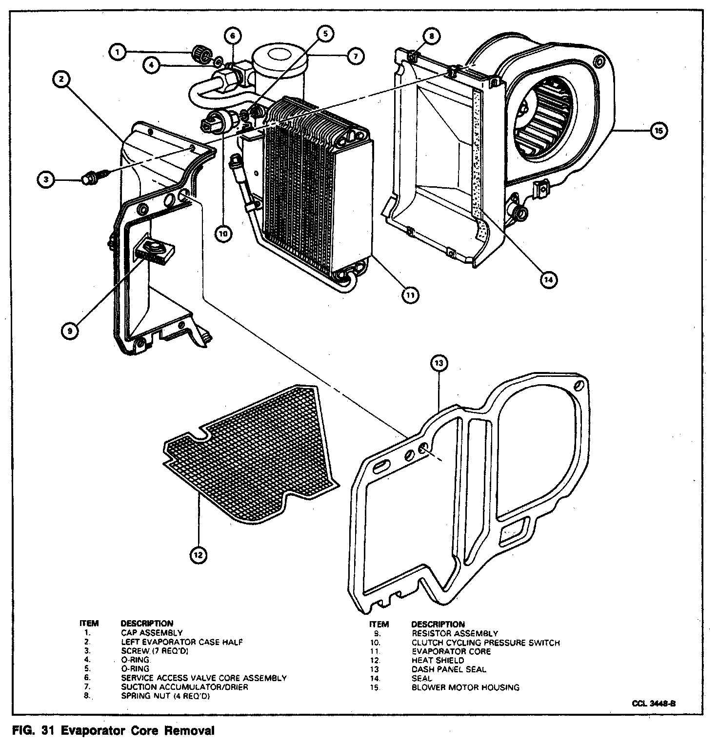 NOTE: Whenever the evaporator core is replaced, it will be necessary to replace the suction accumulator/drier.