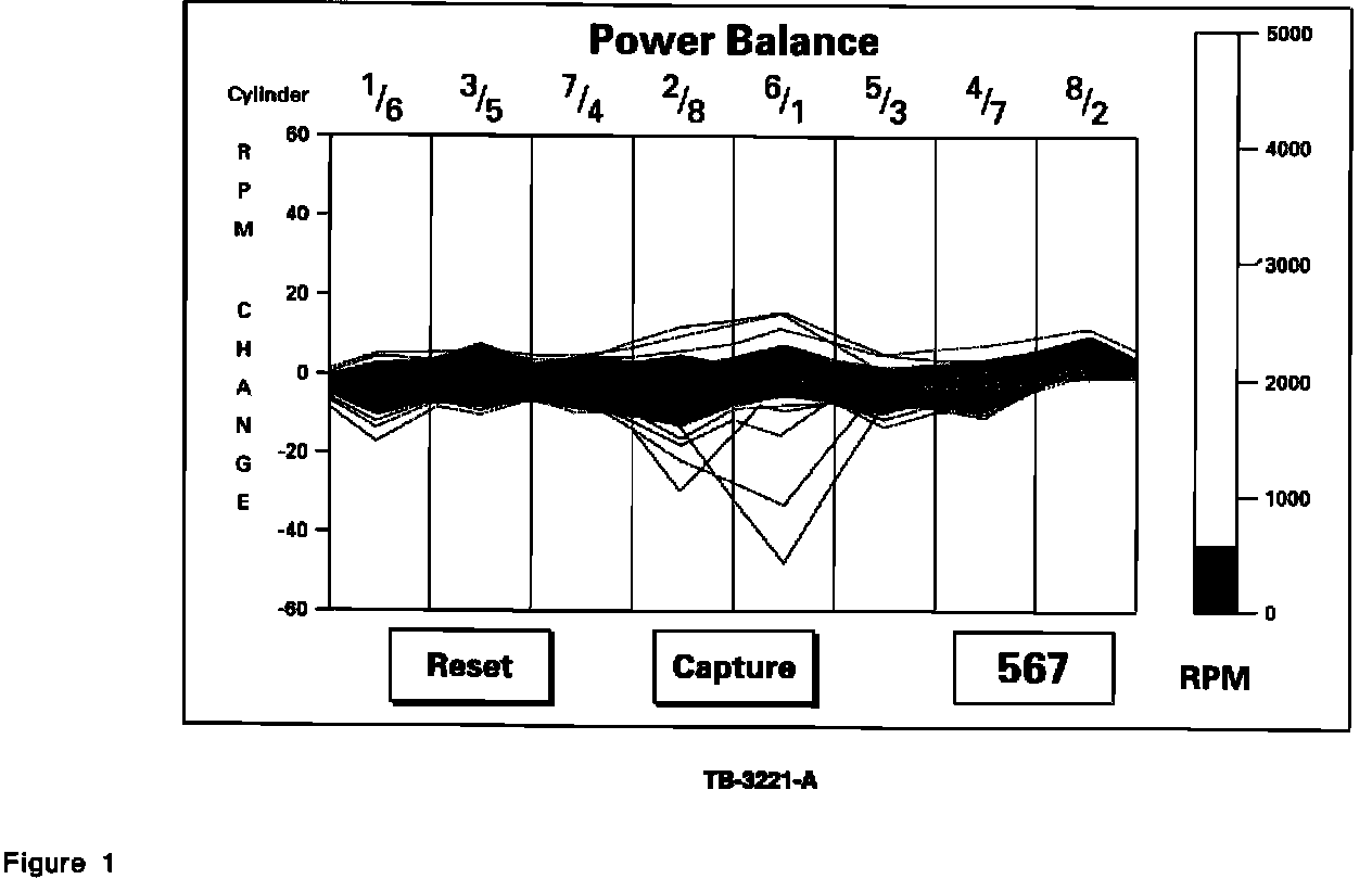 2. Observe the test for ten (10) minutes to determine which cylinder(s) are "missing". Refer to Figure 1 for a typical pattern of a cylinder misfire.