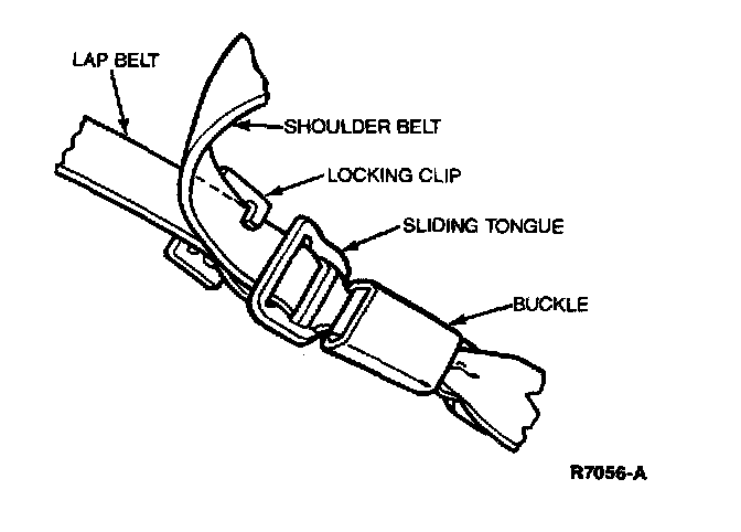 The locking clip must be used to secure a child seat when the vehicle has a shoulder and lap belt with a sliding tongue. Every seat belt that requires a locking clip is identified on the belt, with the label. The locking clip is installed on a sample piece of webbing to show proper installation.