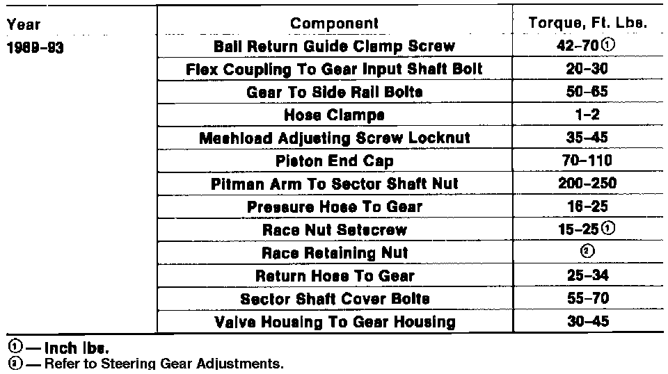 Tightening Specifications: