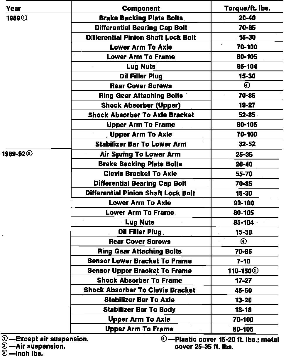 Tightening Specifications: