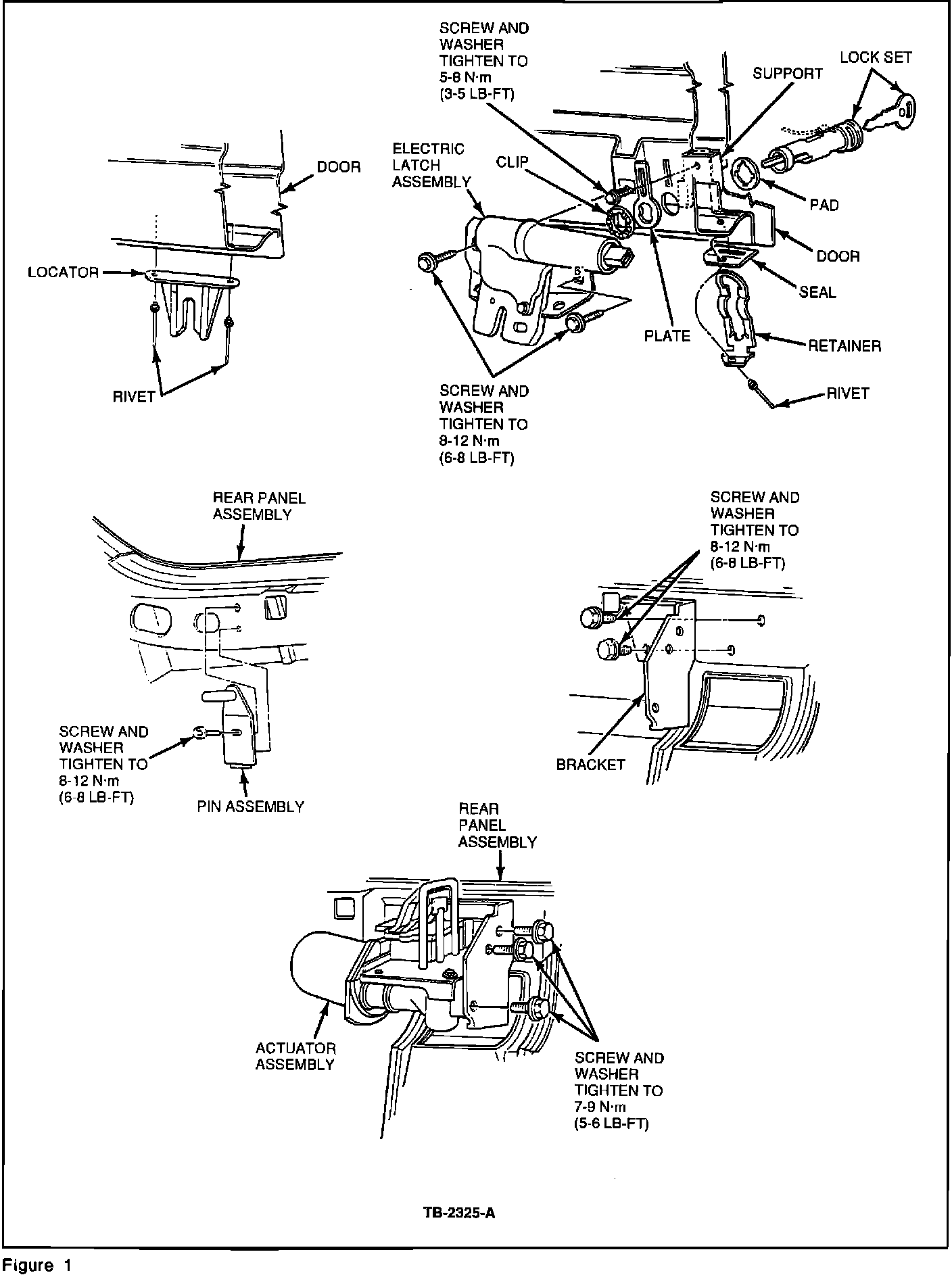 5. In place of the striker, install a power pulldown actuator bracket (FOVY-5443258-A) with the original striker screws and washers, Figure 1. Tighten to 6-8 lb.ft. (8-11 N-m).