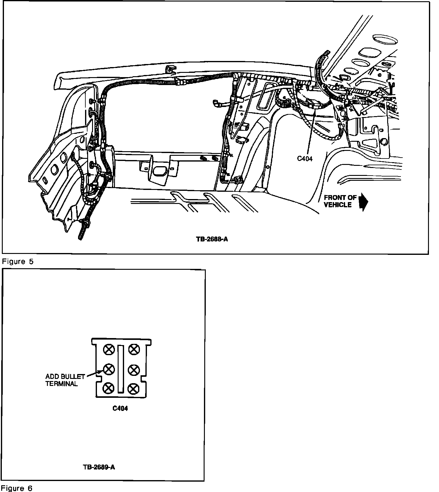 a. Install bullet terminal of lead assembly (F2VY-14A523-A) as shown in Figure 6.