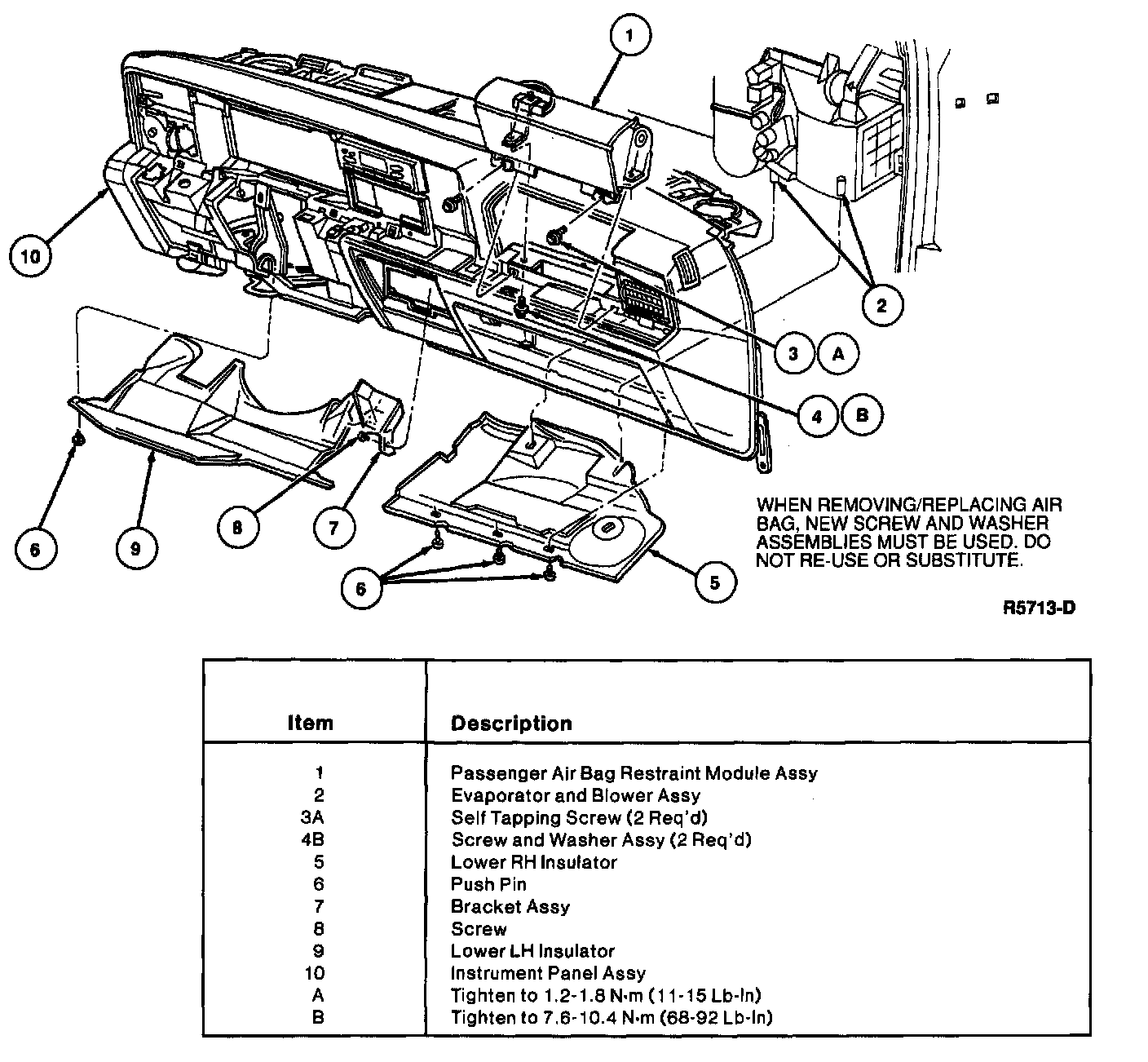 24. Remove two screws from instrument panel to cowl top brace and one screw from passenger air bag support bracket.