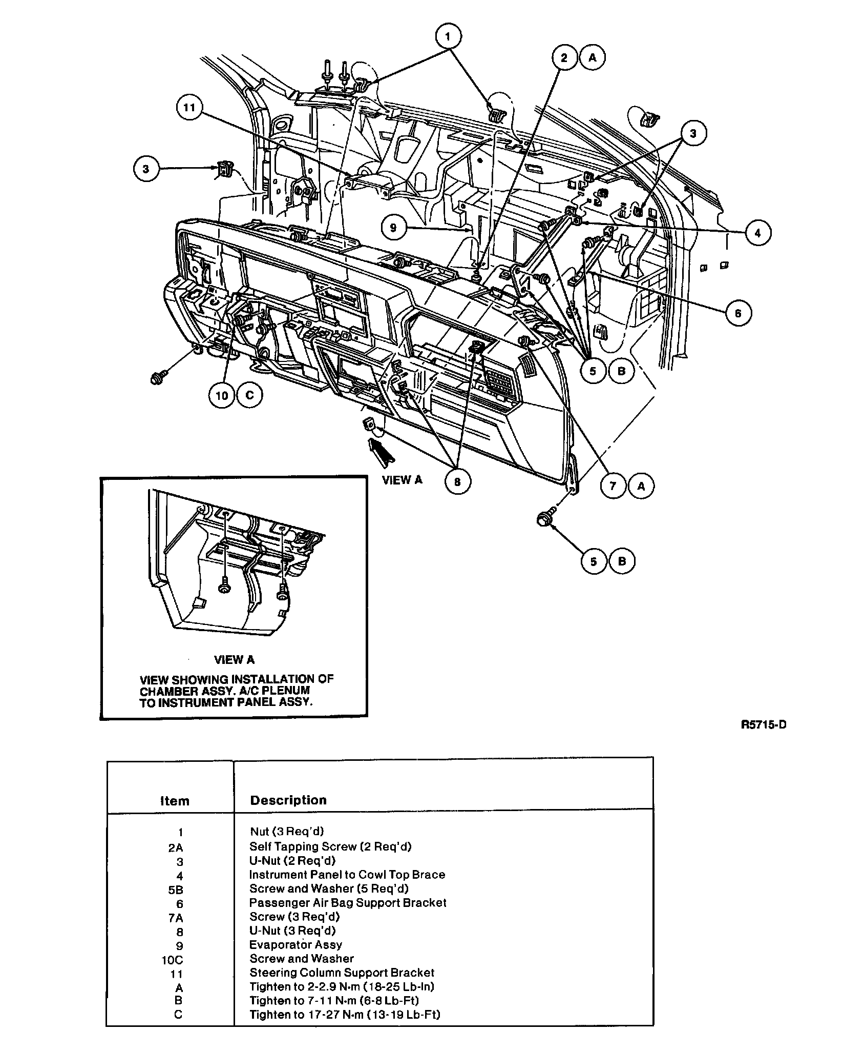 7. Remove four screws retaining lower instrument panel steering column reinforcement. Remove reinforcement.