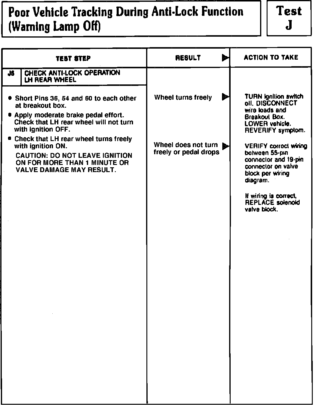 Fig. 145 Test J5 (Poor Vehicle Tracking During ABS Function). 1990-91 Continental: 1990 Sable/Taurus & Town Car:
