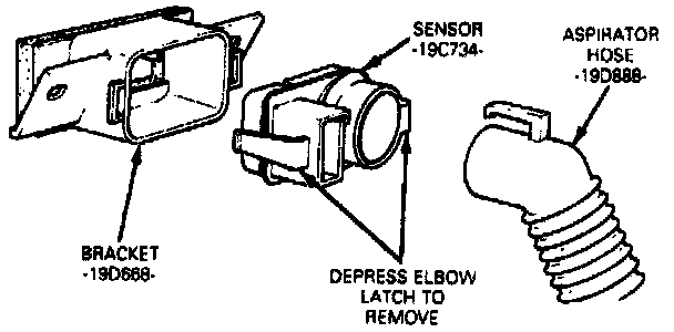 3. Pull the sensor down into the glove compartment. Then disconnect the electrical connector and aspirator flex hose from the sensor.