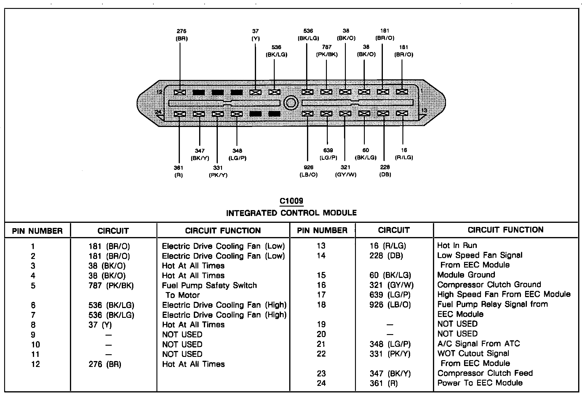 Integrated Control Module Connector Pinout And Pin Identification: