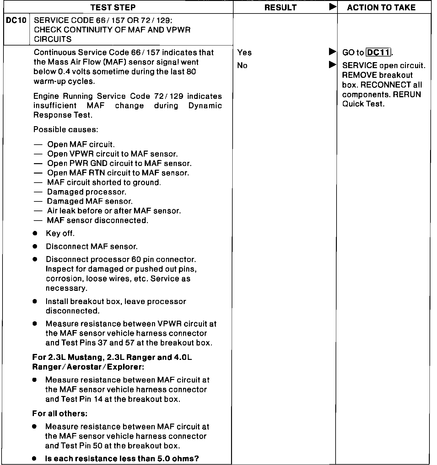 DC10 - 66/157, 72/129 - Check Continuity of MAF and VPWR Ckts