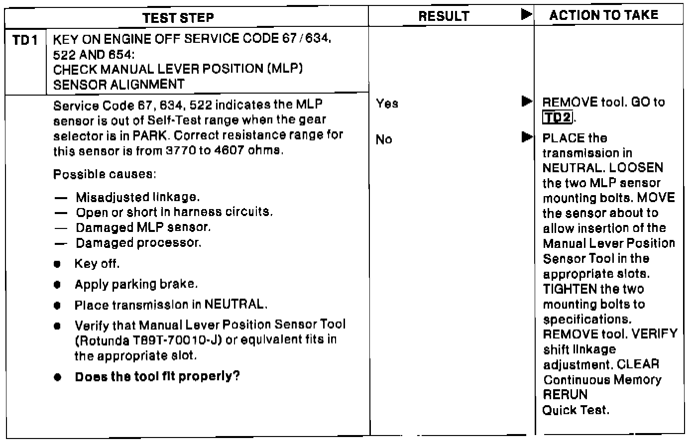 TD1 - Key On Engine Off Service Code 67/634, 522 and 654