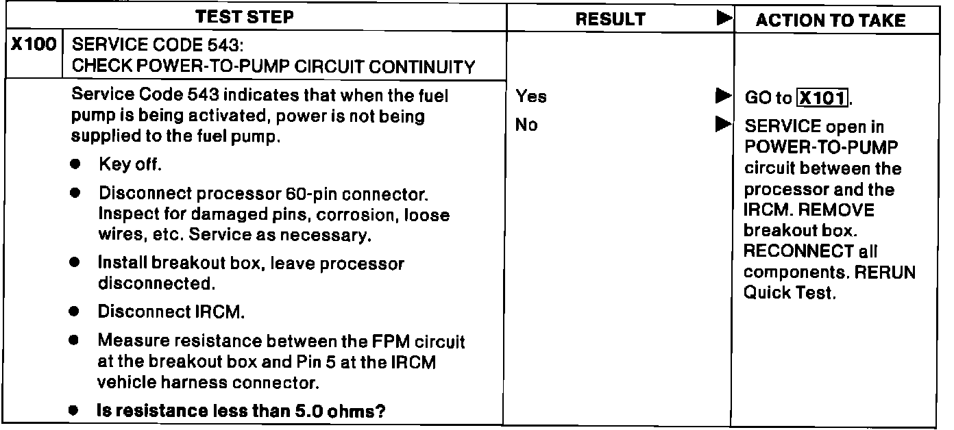 X100 - Service Code 543: Check Power-to-Pump Circuit Continuity