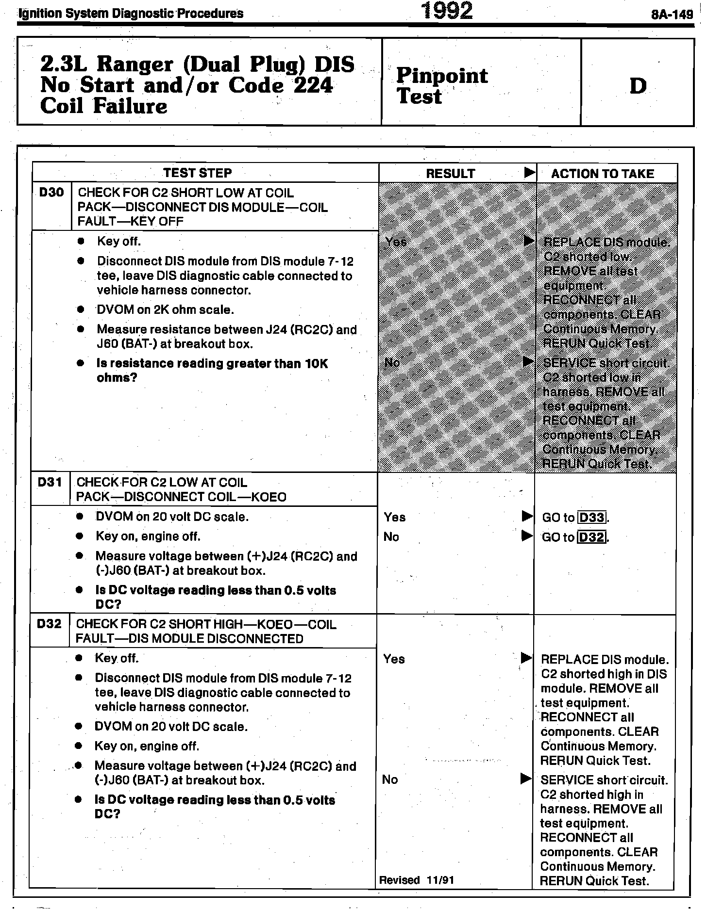 8A-149 DIS No Start and/or Code 224 Coil Failure
