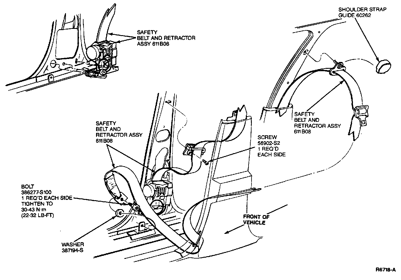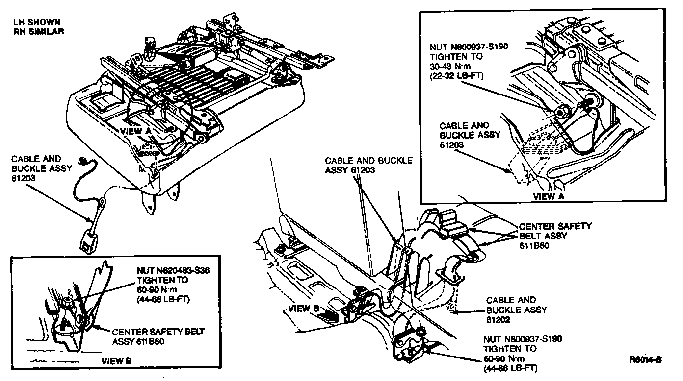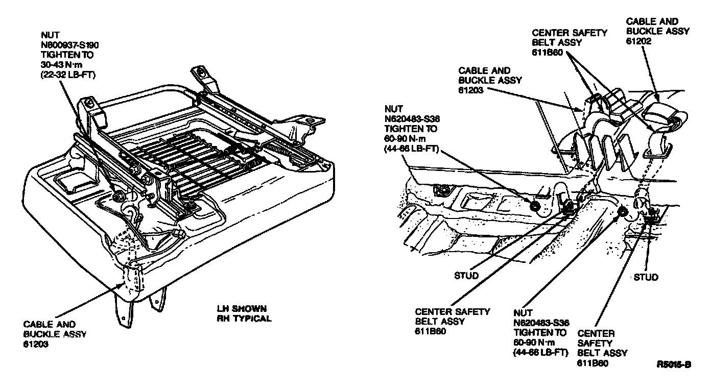 2. Tighten all attaching bolts to 30-40 N.m (23-29 lb-ft) . Cycle system several times to ensure proper operation of retractor. Make sure webbing is not twisted.