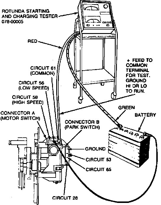 c. If battery voltage is present at terminal 65, check motor housing ground. Repair as needed.