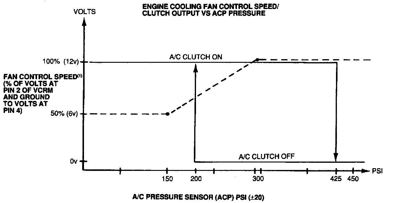 Test 1 Conditions: At idle, A/C ON (pressure switch closed), normal engine temperature.