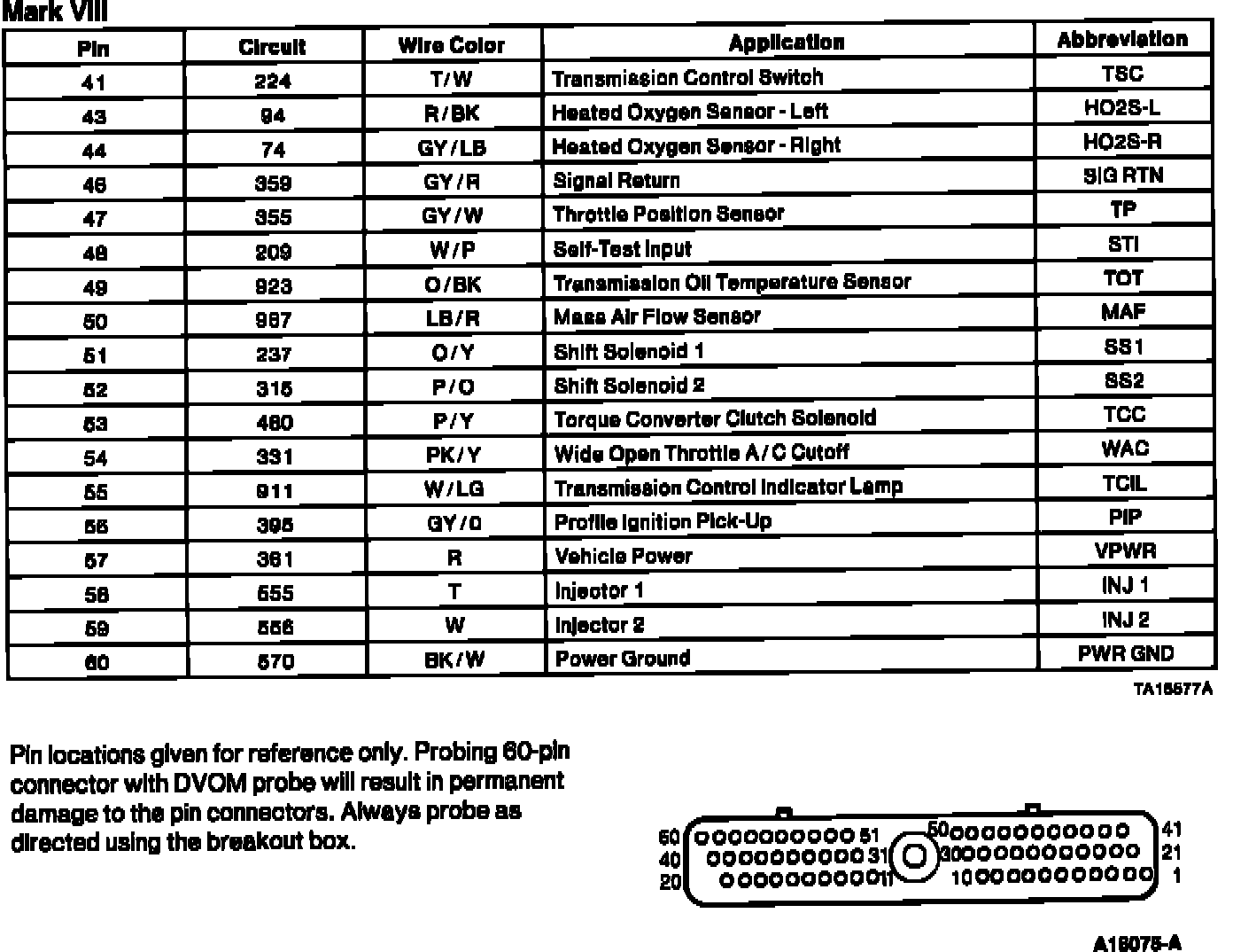 Powertrain Control Module (PCM) Connector Pin Usage: