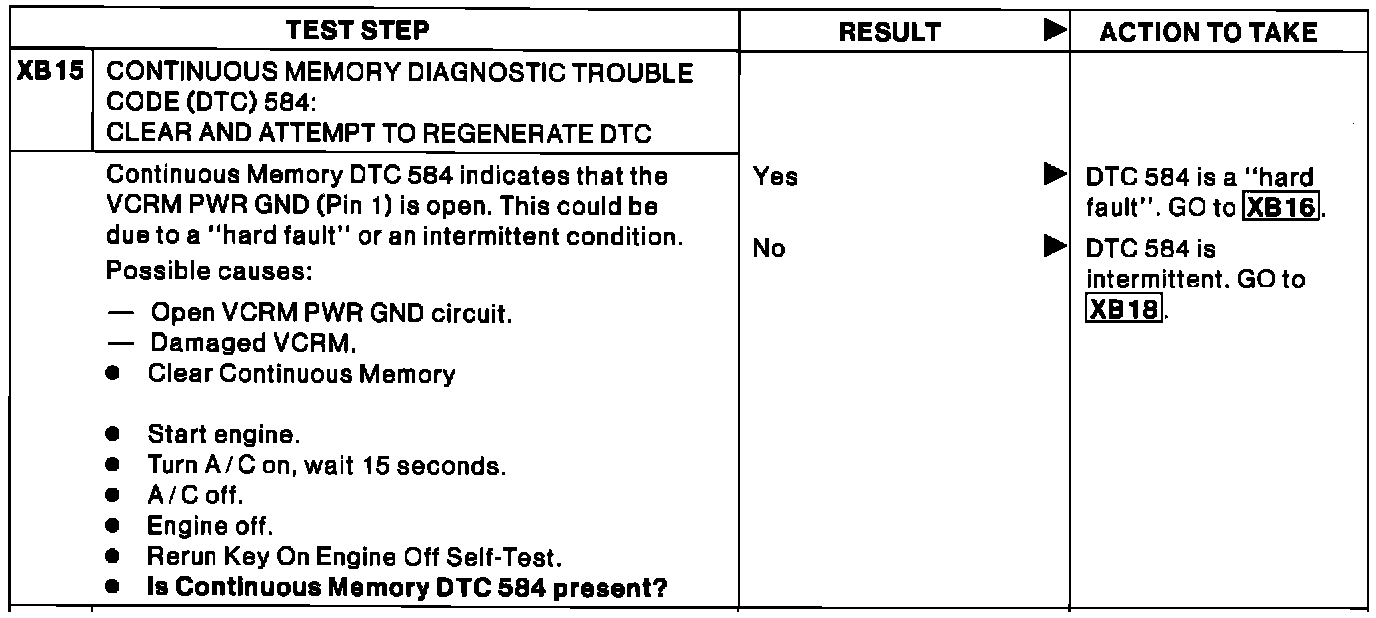 XB15 - Continuous Code 584: Clear and Try to Regenerate Code