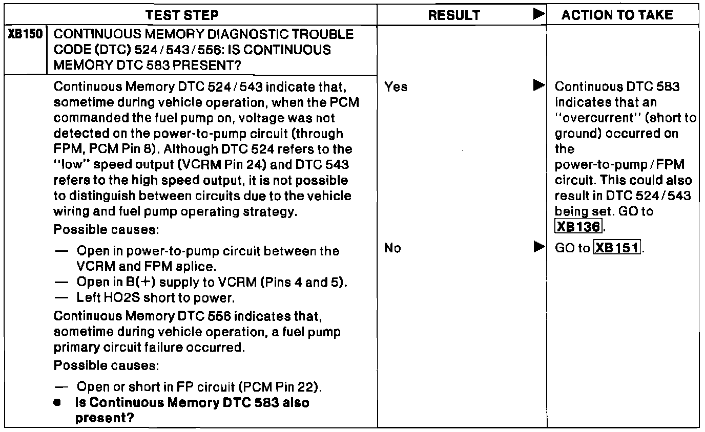 XB150 - Continuous Code 524/543/556: Is Cont Code 583 Present