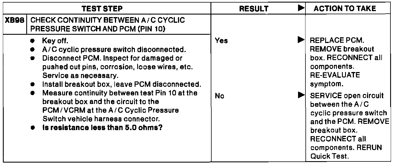 XB98 - Check Continuity Between A/C Pressure Switch and PCM
