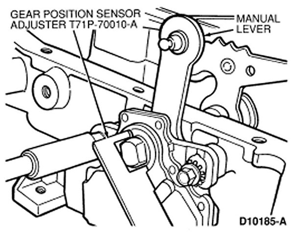 Note: PARK is the last detent when the manual lever is full forward. Return two detents toward output shaft for NEUTRAL.