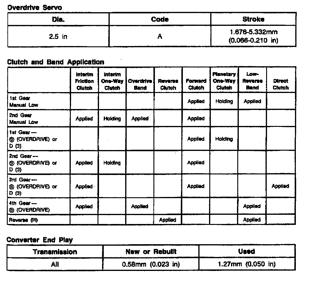 AODEW (4R70W) 4-spd A/T, Thrust/Clutch & Band Application: