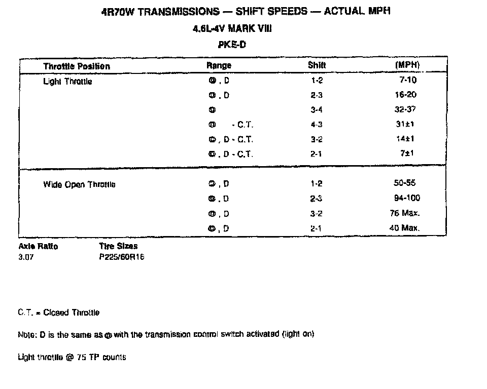 AODEW (4R70W) 4-spd A/T, Shift Speeds:
