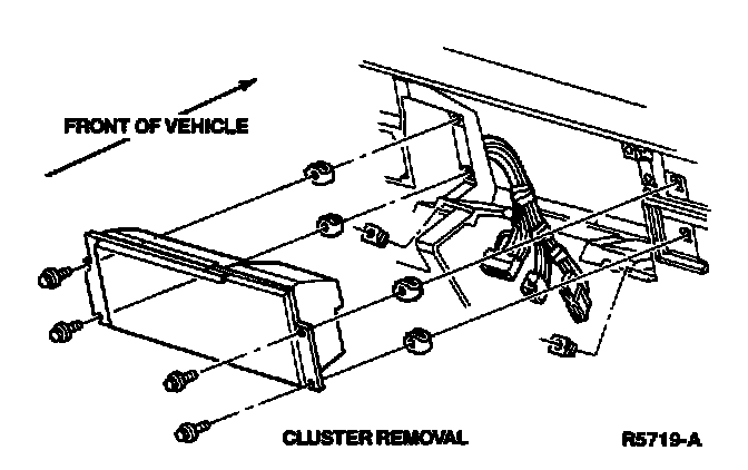 22. Remove four screws retaining cluster. Disconnect electrical connectors.