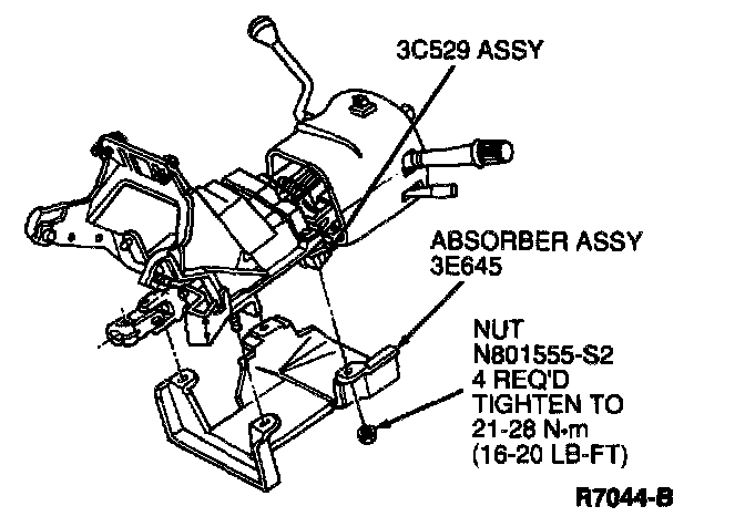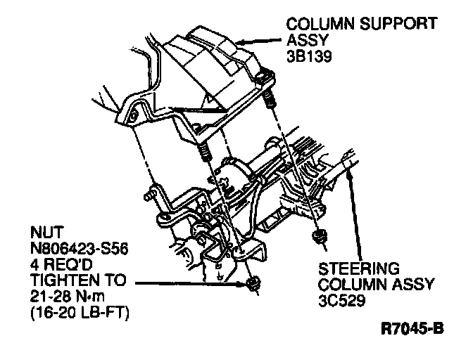 7. Remove four screws retaining lower instrument panel steering column reinforcement. Remove reinforcement.
