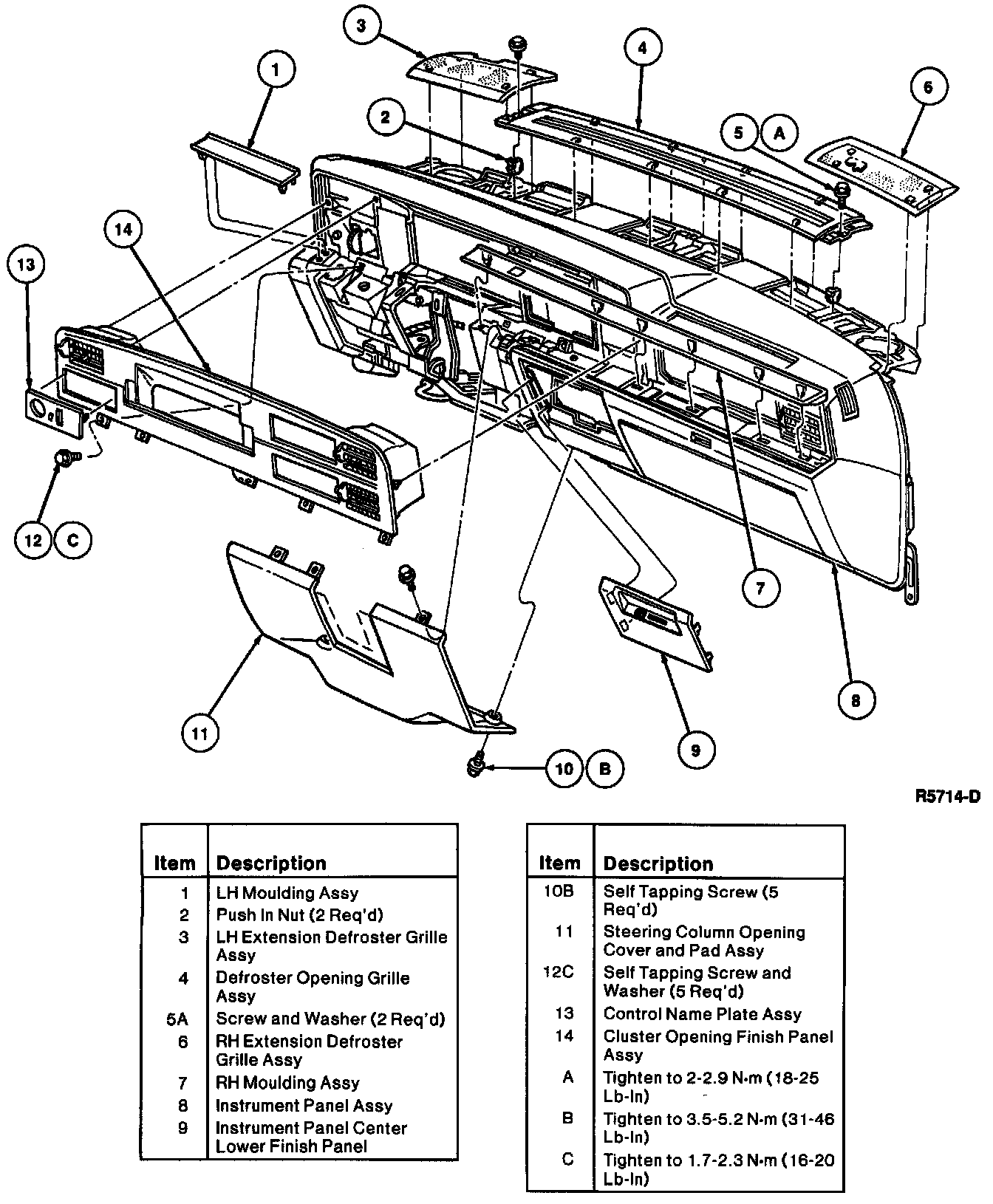 20. Remove five screws from cluster opening finish panel and remove panel.