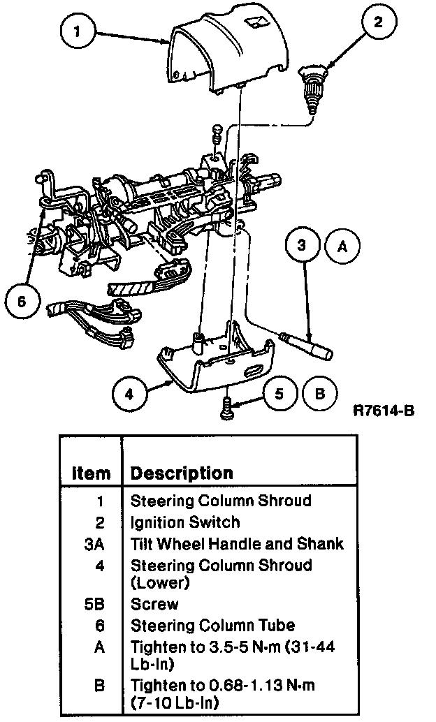 13. Remove bolt retaining transmission shift cable and bracket to steering column.