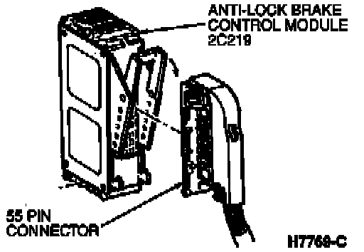- Disconnect 55-pin plug from anti-lock brake control module.