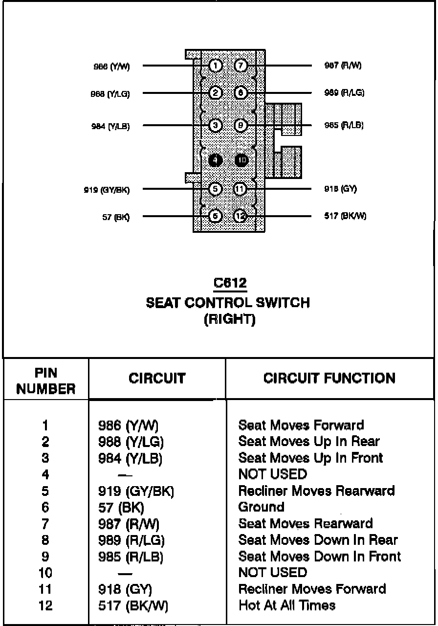 Seat Control Switch: