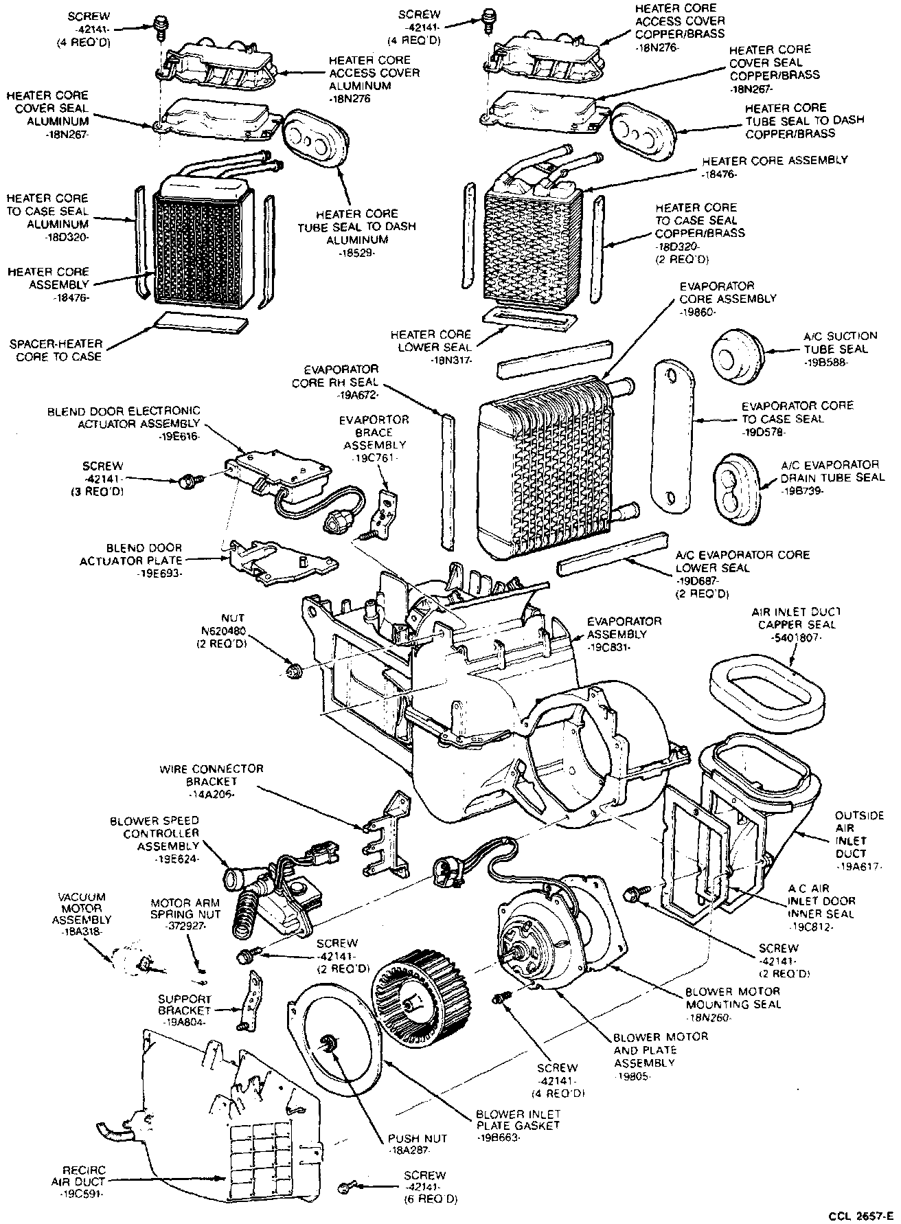 NOTE: The illustration shows a disassembled view of the evaporator case assembly. It is a general reference to illustrate the physical characteristics of the components of the assembly, as well as the location the parts occupy in relation to each other.