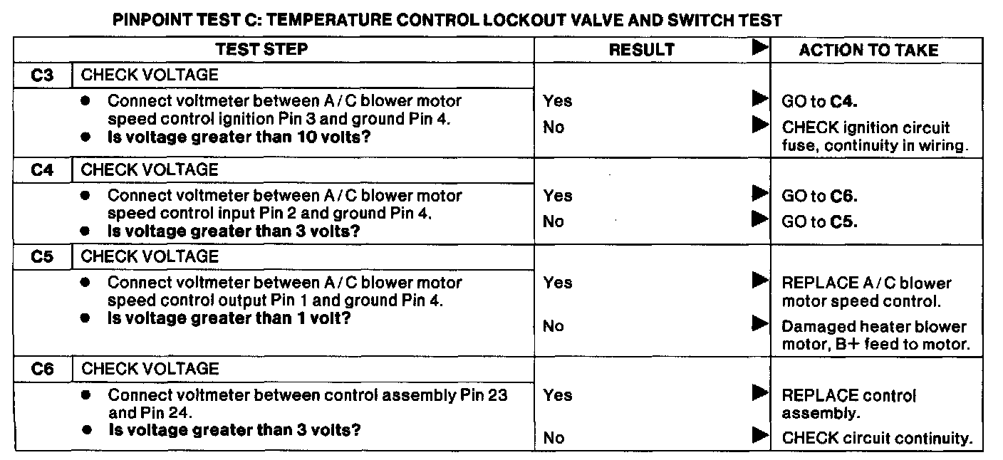 ^ Rotunda Digital Volt Ohmmeter 007-00001 Testing requires a Rotunda Digital Volt Ohmmeter 007-00001 or equivalent. Refer to the EATC System Wiring Diagram for terminal pin locations. Use the following charts for diagnostic procedures.