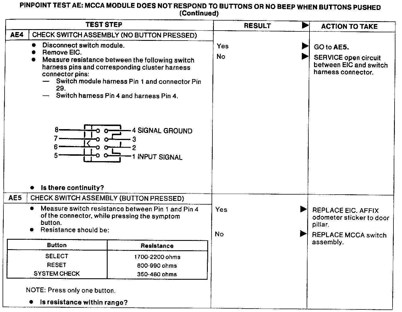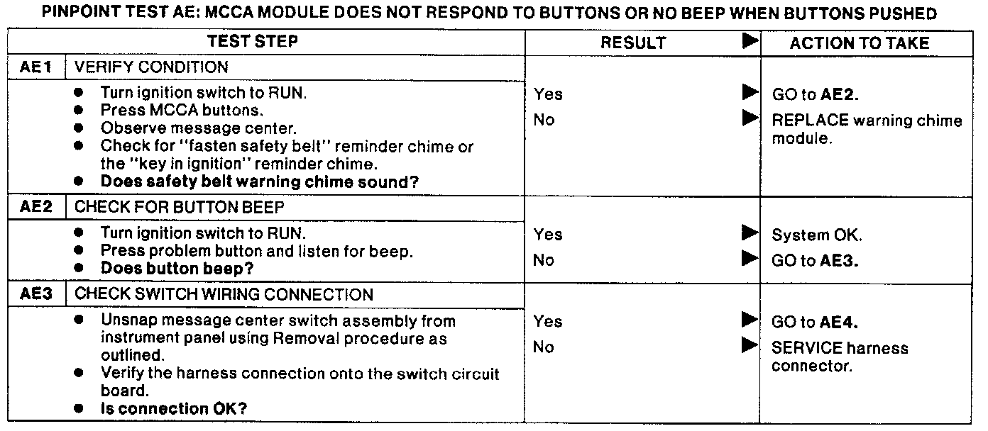 PINPOINT TEST AE: MCCA MODULE DOES NOT TO BUTTONS OR NO BEEP WHEN BUTTONS PUSHED.: