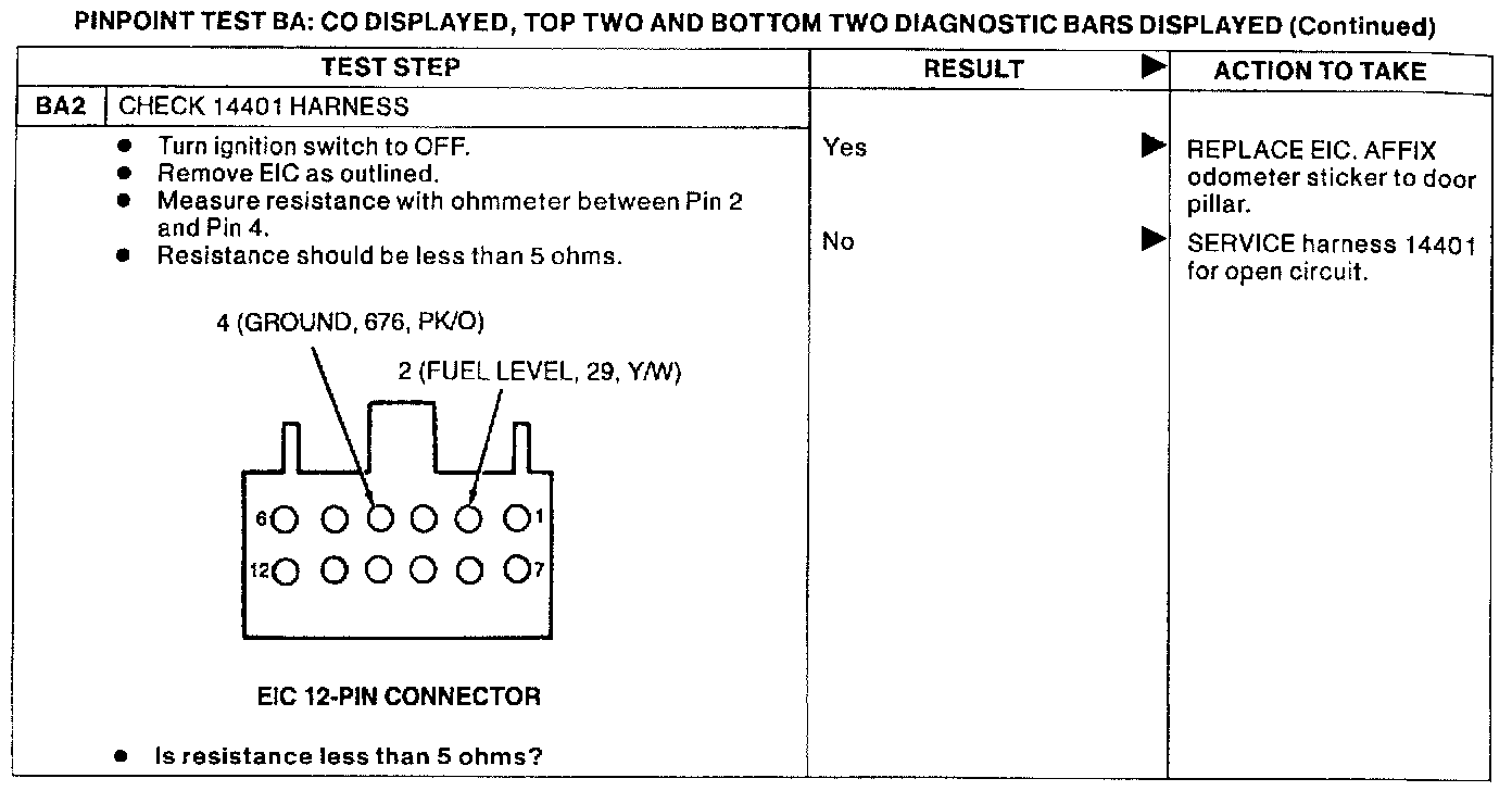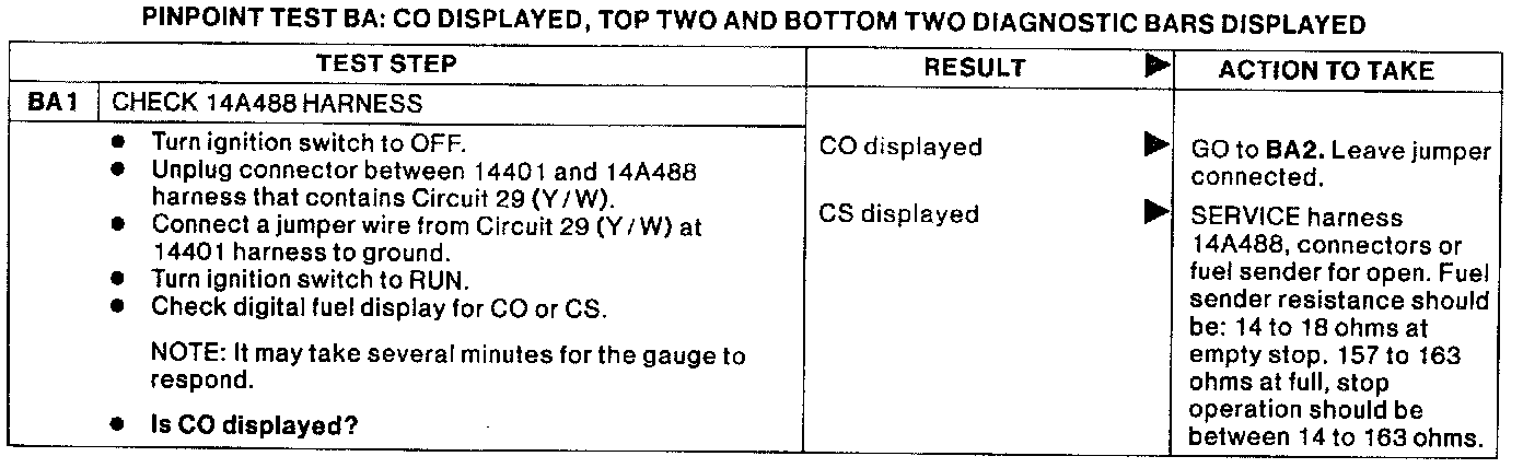 PINPOINT TEST BA: CO DISPLAYED, TOP TWO AND BOTTOM TWO DIAGNOSTIC BARS DISPLAYED.:
