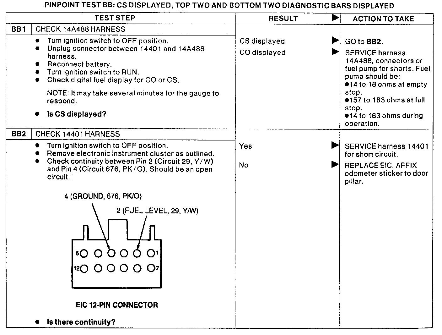 PINPOINT TEST BB: CS DISPLAYED, TOP TWO AND BOTTOM TWO DIAGNOSTIC BARS DISPLAYED.: