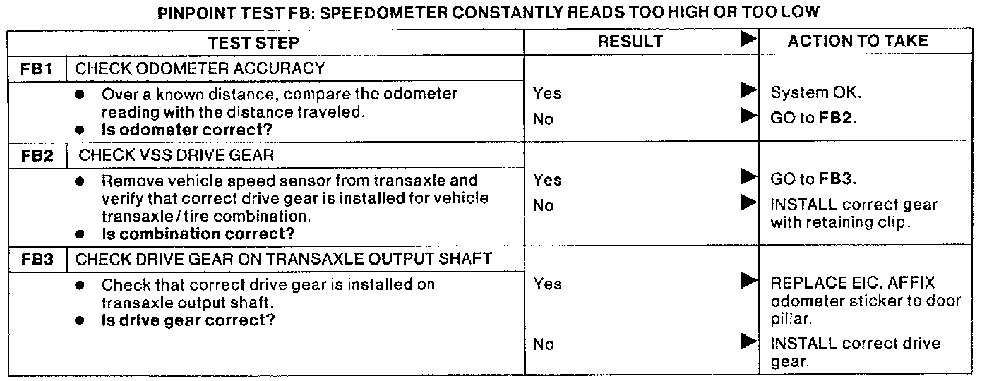 PINPOINT TEST FB: SPEEDOMETER CONSTANTLY READS TOO HIGH OR TOO LOW.: