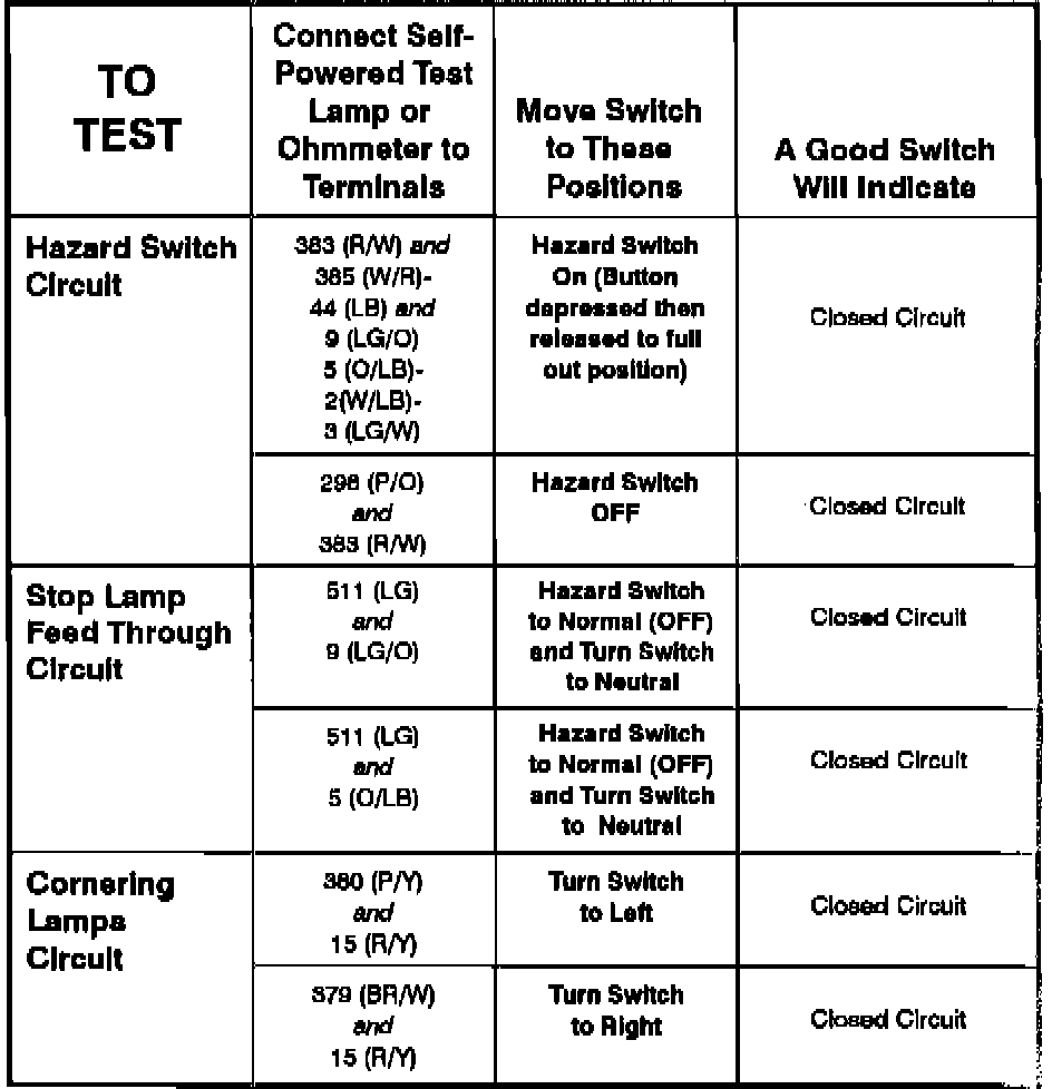 Hazard Warning Switch: Testing and Inspection