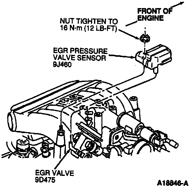 ^ Disconnect EGR pressure valve sensor to EGR valve hose and remove EGR pressure valve sensor.