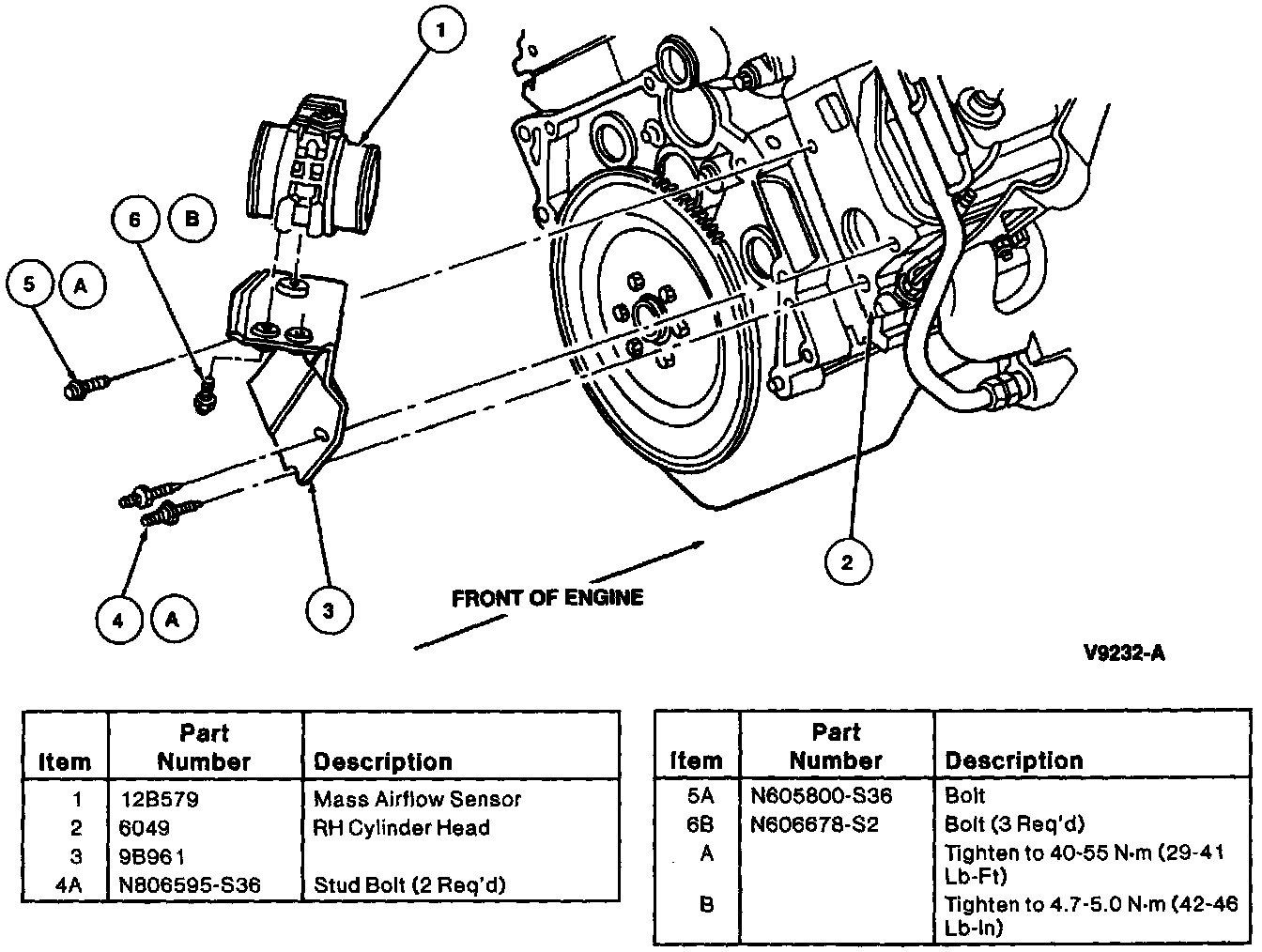 2. Tighten MAF sensor retaining bolts to 4.7-5.0 Nm (42-46 in lb).
