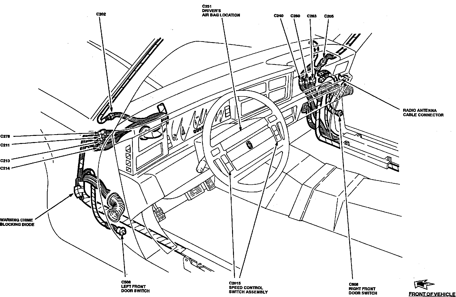 The SPOUT Check Connector is located in the RH rear of engine compartment, taped to harness, near Ignition Control Module