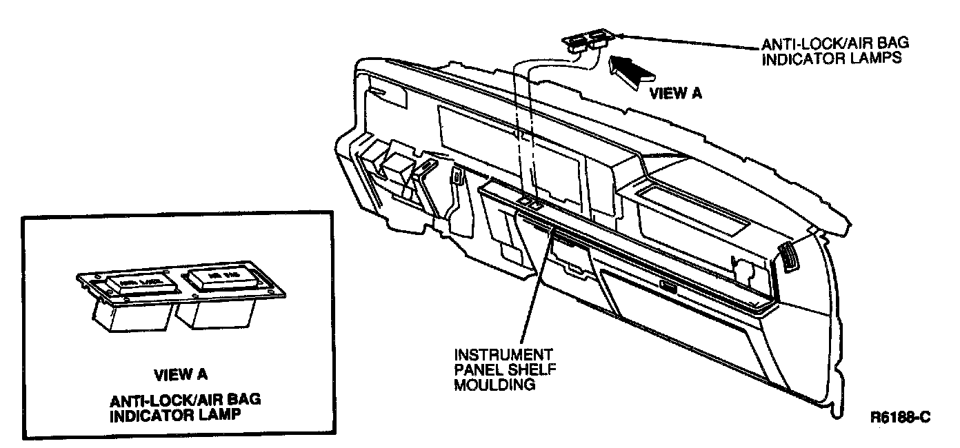5. If a fault exists that makes unwanted air bag deployment possible, the air bag diagnostic monitor has an Internal thermal fuse that will blow automatically. This removes all power to the air bag deployment circuit. The AIR BAG indicator will flash the appropriate code to indicate the suspect circuit.