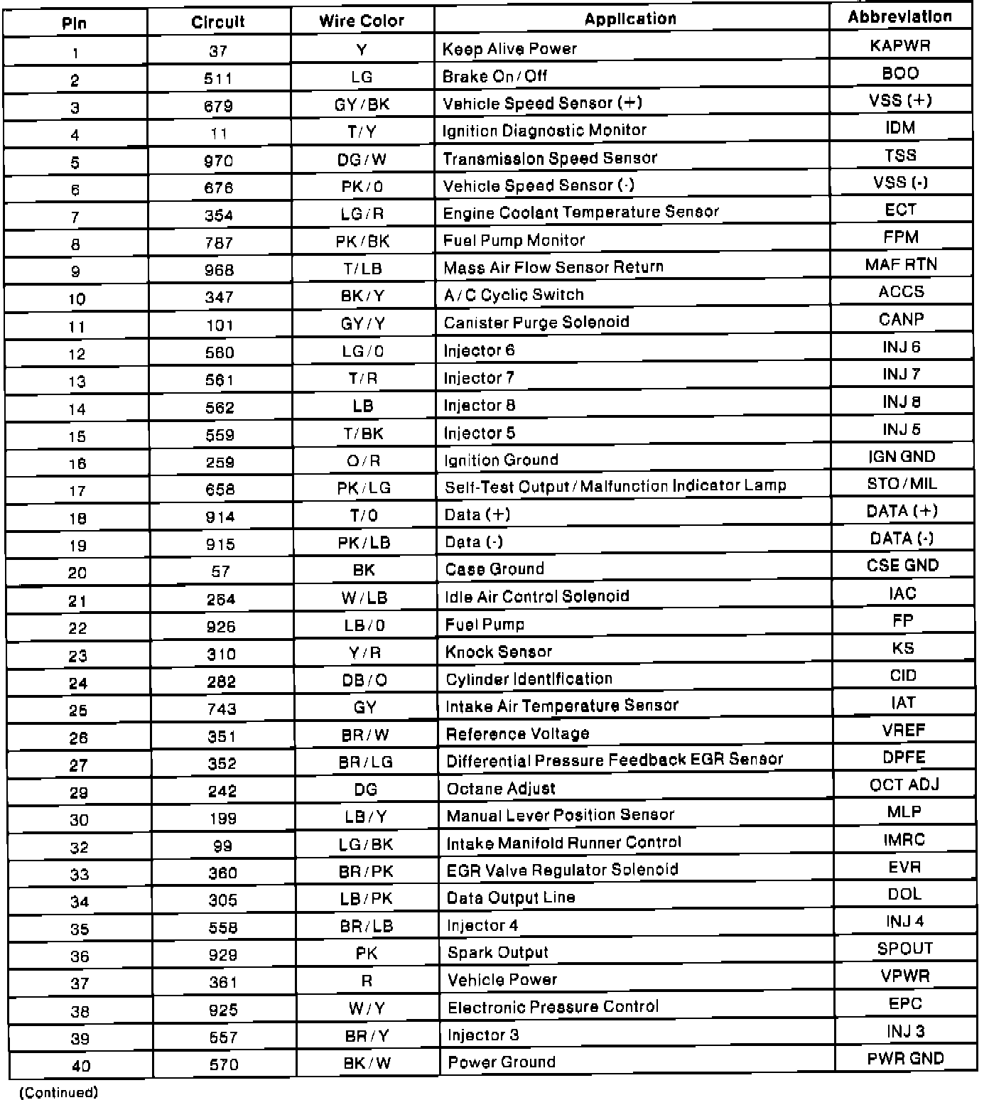 Powertrain Control Module (PCM) Connector Pin Usage:
